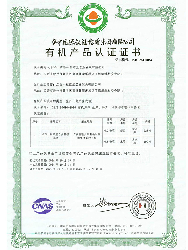 有機(jī)產(chǎn)品認(rèn)證證書(shū)